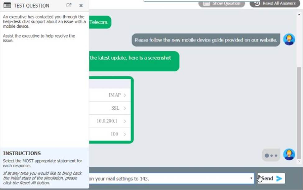 An executive has contacted you through the help-desk chat support about an issue with a mobile device.