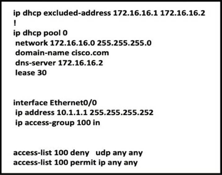 - E . Configure access-list 100 permit udp any any eq 67 as the first line