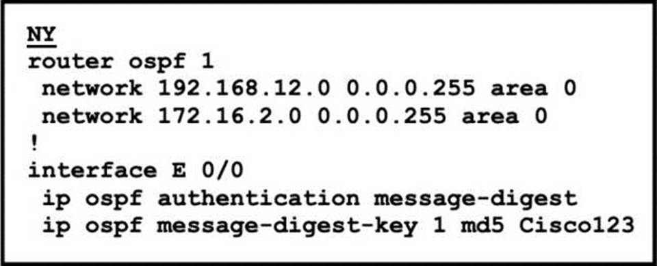 ip ospf message-digest-key 1 md5 Cisco123 - C . NY interface E 0/0