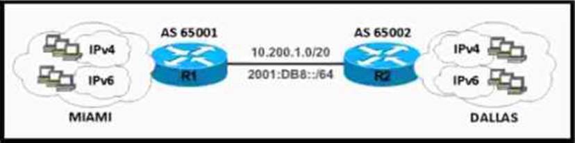 A network engineer configured routers R1 and R2 with MP-BGP. The engineer noticed that the routers cannot exchange any IPv6 routes, however, the IPv4 neighbor relationship is working fine.