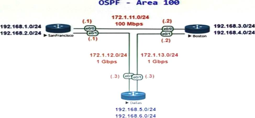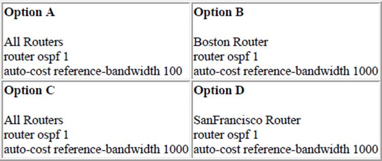 SanFrancisco and Boston routers are choosing slower links to reach each other despite the direct links being up.