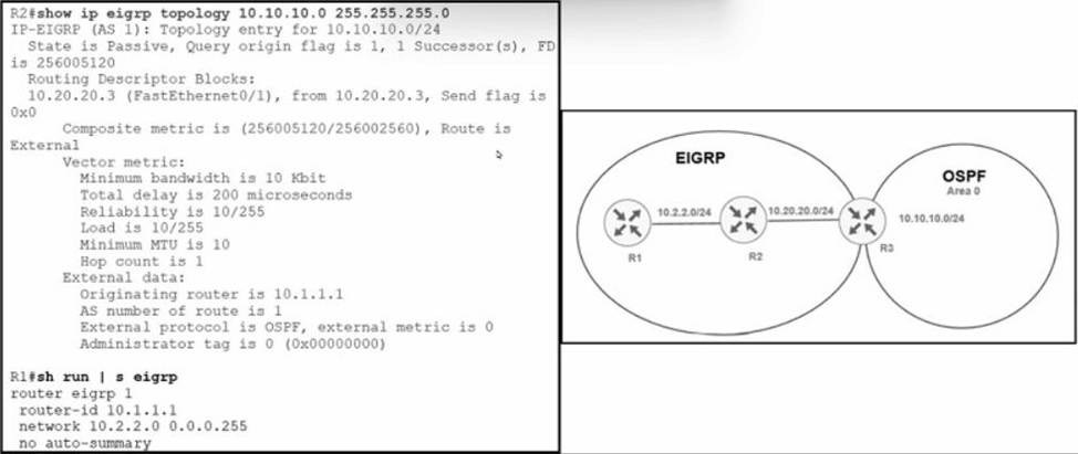 - D . R1 is not receiving the next-hop IP address of R3. R2 must enable the network 10 20.20.0V24 within EIGRP.