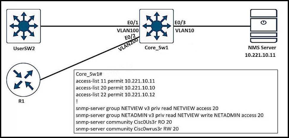 - B . snmp-server group NETVIEW v2c priv read NETVIEW access 20