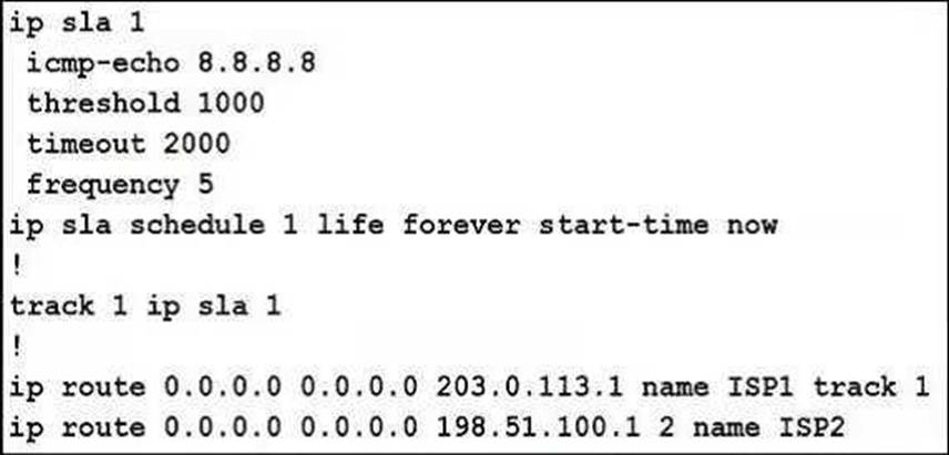 - D . Modify the threshold to match the administrative distance of the ISP2 route.