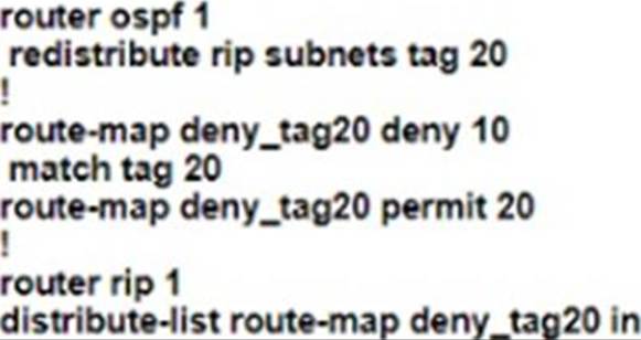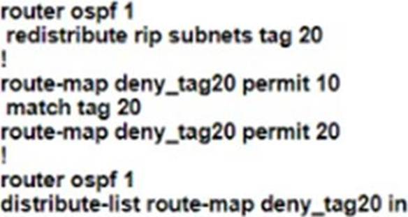 DRouter(config-router)#redistribute ospf 1 match internal external 1 external 2‖