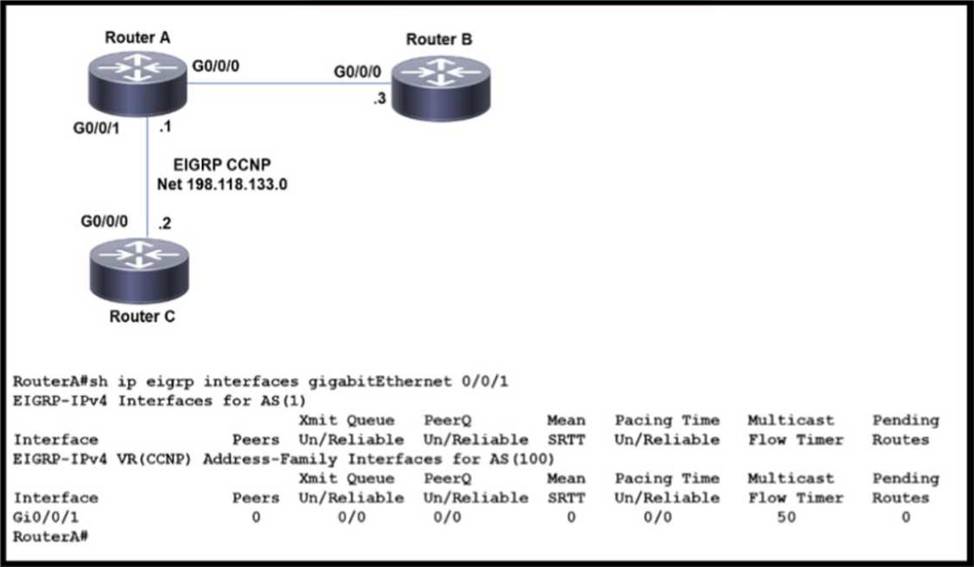 EIGRP adjacency between router A and router C is not working as expected.