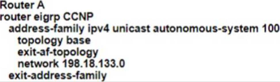 - B . Configure EIGRP 100 with a network statement for loopback 0 and redistribute the connected route for loopback 50.