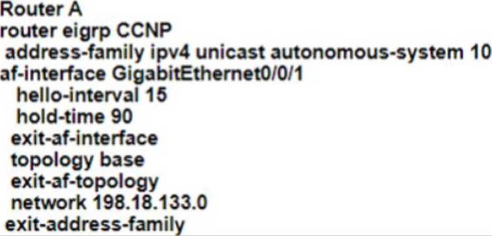 - C . EIGRP peering between R1 and R2 to be fixed.