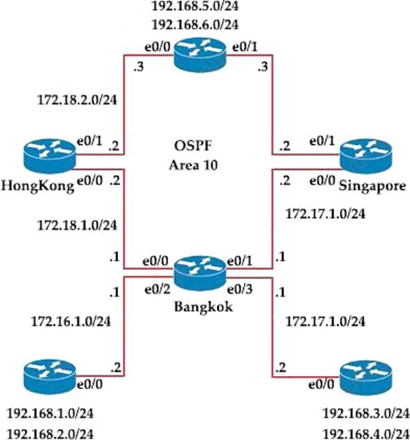 We need to use Policy Based Routing (PBR) here on Bangkok router to match the traffic from 192.168.3.0/24 & 192.168.4.0/24 and “set ip next-hop” to HongKong router (172.18.1.2 in this case).