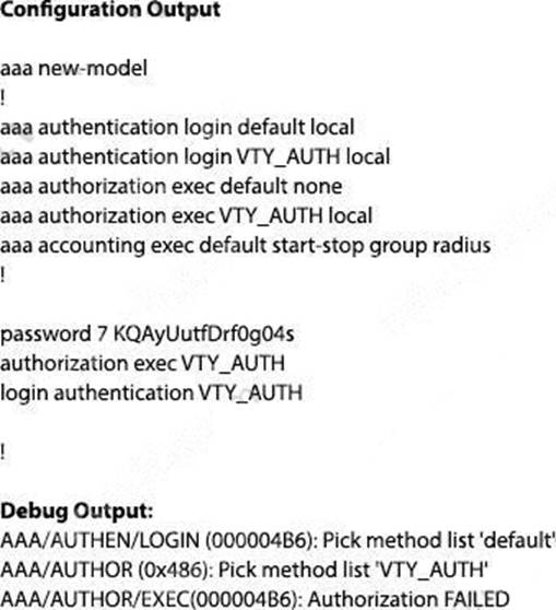 In the debug output, we see that the Authorization (not Authentication) failed so we need to correct the authorization. In order to enable authorization, we must use the global command “aaa authorization console” first.