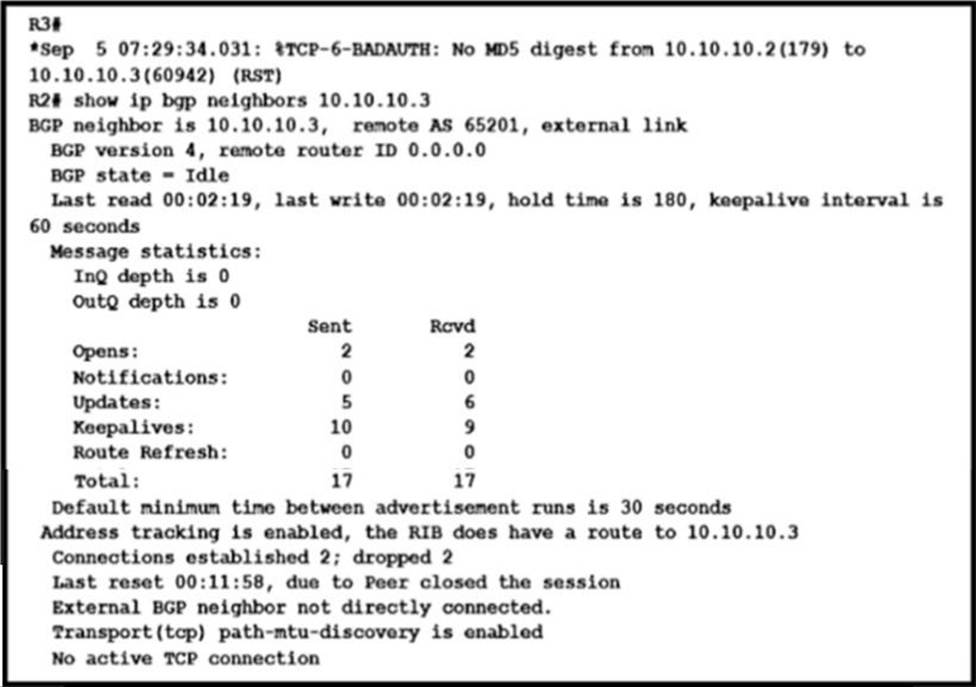 The network operation team observes a traffic forwarding issue between R2 and R3: