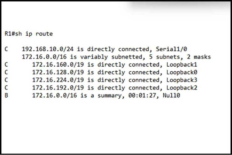 The summary route is not shown in the RouterB routing table after this below configuration on Router_A.