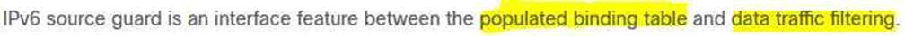 - A . It uses the populated binding table for allowing legitimate traffic.