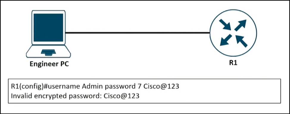 An engineer is trying to add an encrypted user password that should not be visible in the router configuration.
