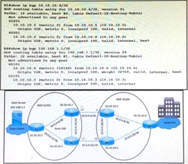 A customer reports that user traffic of bank XYZ to the AAA server is not using the primary path via the R3-R2 link.