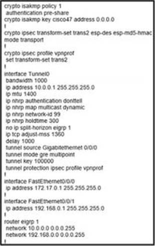 A network administrator must configure DMVPN tunnels between the hub and spoke with dynamic spoke-to-spoke tunnel capabilities using EIGRP.