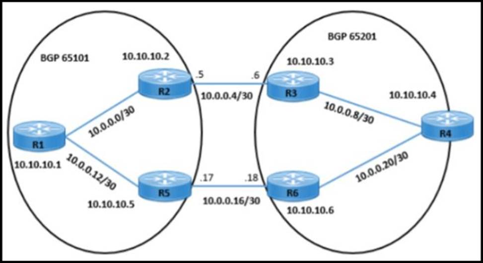 - B . Advertise R2 and R3 loopback IPs in AS 65101 and AS 65201.