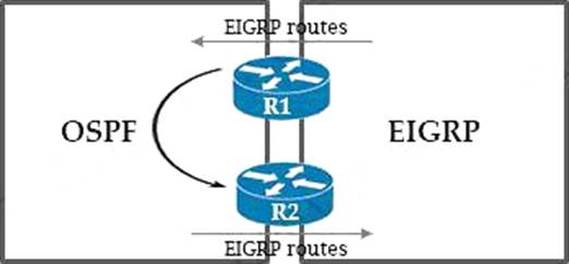 - B . Apply a prefix list of EIGRP network routes in OSPF domain on R1 to propagate back into the EIGRP routing domain.