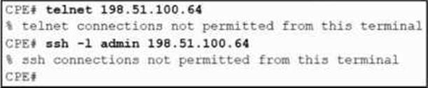 - D . Remove sequence 20 for sequence 40 in the access list to allow Telnet.