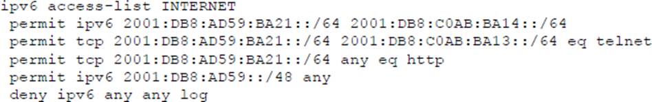 - C . ipv6 access-class INTERNET in