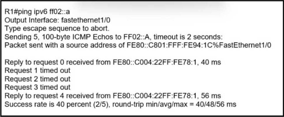 An engineer investigates an IPv6 EIGRP neighbor adjacency issue that sees the neighbors flapping and issued a ping from R1 to its directly connected neighbor. The link between the switches is stable at Layer 2. and other connected devices are also functioning.