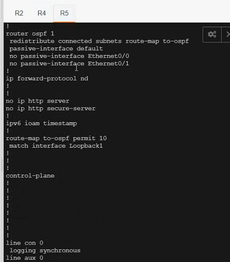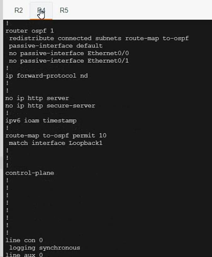 Redistribute connected subnets route-map to-ospf metric-type 1
