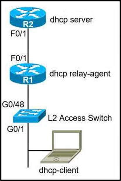 - A . service dhcp-relay command on R1