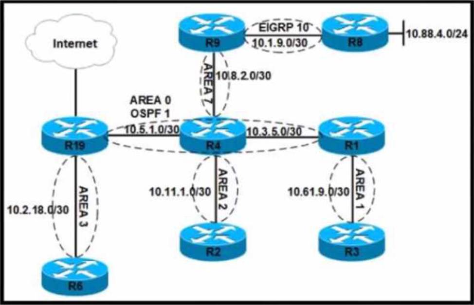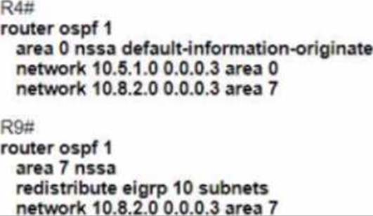 area. However, this option does not generate a default summary route for area 7, which means R9 has no route to reach the internet4.