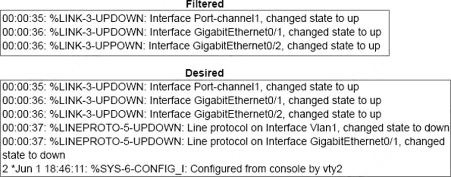 An engineer filtered messages based on severity to minimize log messages. After applying the filter, the engineer noticed that it filtered required messages as well.