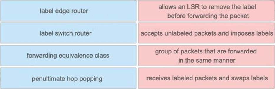 Drag and drop the MPLS concepts from the left onto the descriptions on the right.