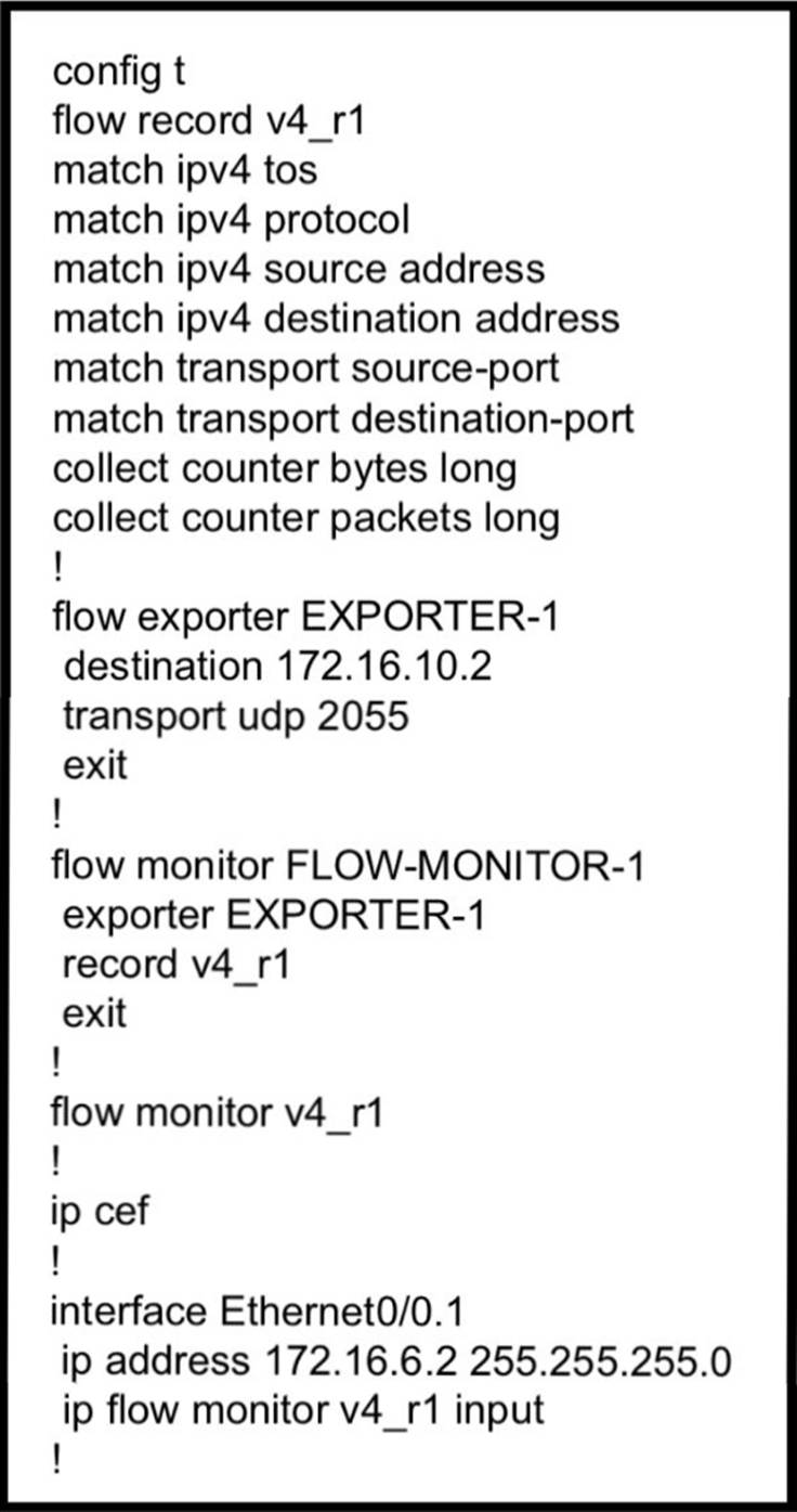 - A . flow monitor Flowmonitor1destination 10.221.10.11