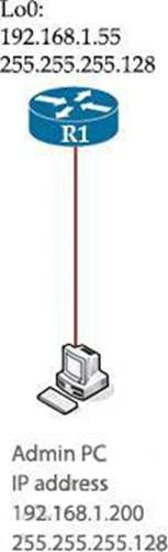 The administrator successfully logs into R1 but cannot access privileged mode commands.
