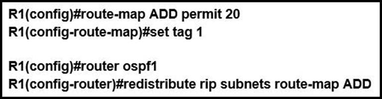 - A . OSPF redistributes RIP routes only if they have a tag of one.