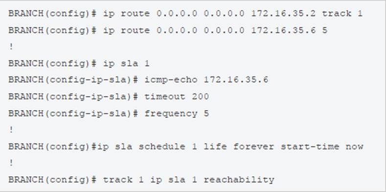 HQ_R2(config)# ip sla responder icmp-echo 172.16.35.5 - D . BRANCH(config)# ip sla 1