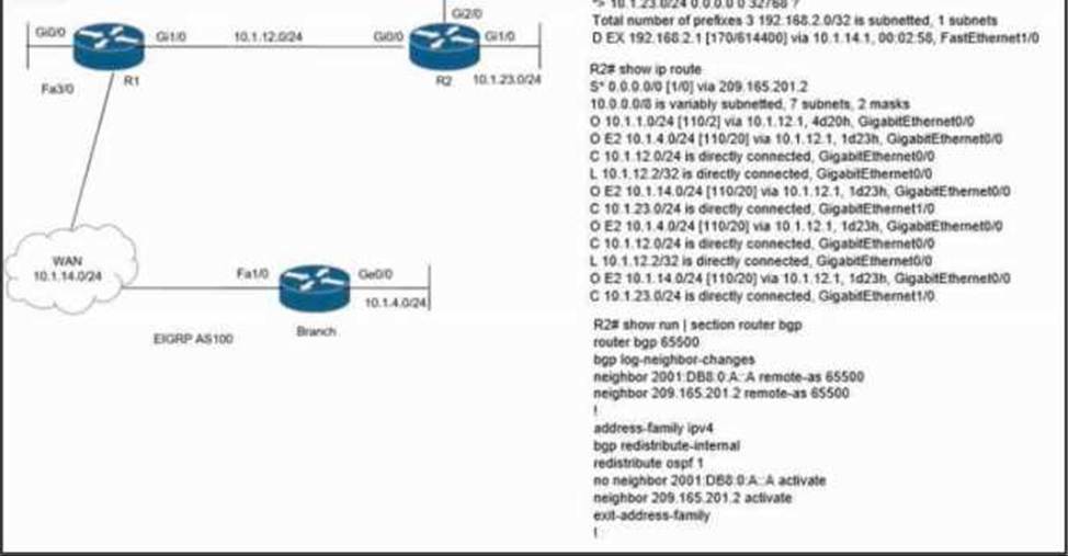 - A . Redistribute BGP routes into OSPF.