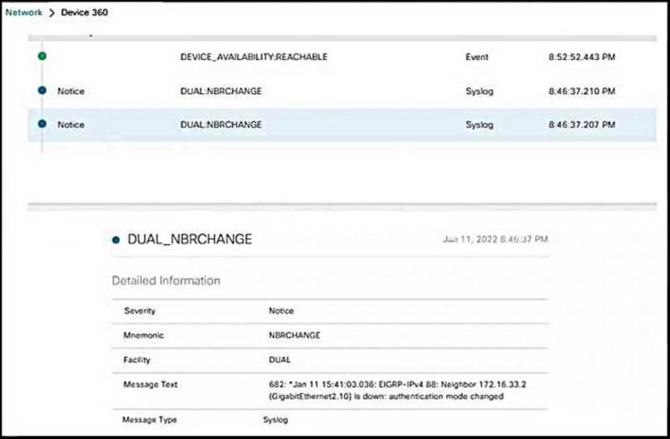 An engineer is investigating an OSPF issue reported by the Cisco DNA Assurance Center.