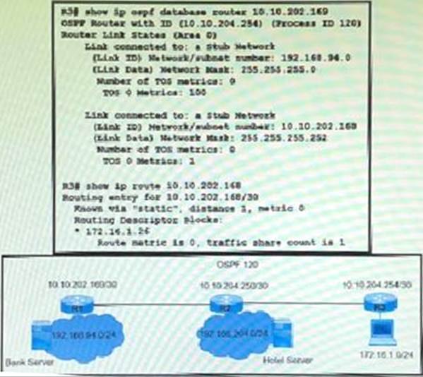 - A . Allow stub network 10.10.202.168/30 on router R3 OSPF.