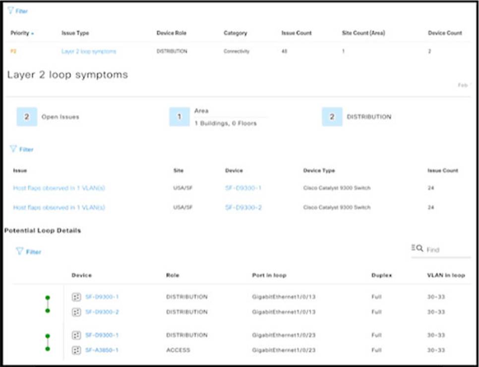An engineer identifier a Layer 2 loop using DNAC.