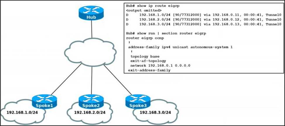 - D . Disable EIGRP split horizon on the TunnelO interface of the hub router.