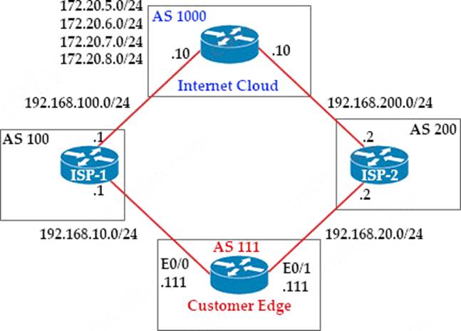 AS 111 wanted to use AS 200 as the preferred path for 172.20.5.0/24 and AS 100 as the backup. After the configuration, AS 100 is not used for any other routes.