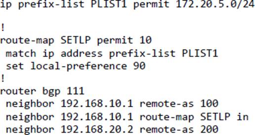 route-map SETLP permit 20 - C . router bgp 111