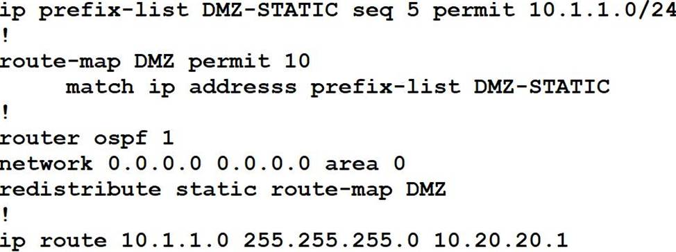 - A . Configure the next hop of 10.20.20.1 in the prefix list DMZ-STATIC