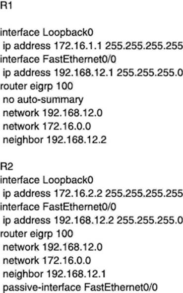 - D . Add the passive-interface command to the R1 configuration so that it matches the R2 configuration.