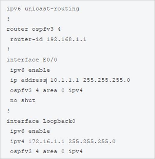 - C . Enable the IPv4 address family under the router ospfv3 4 process by using the address-family ipv4