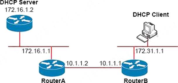 - A . Router B(config-if)#lp helper-address 172.31.1.1