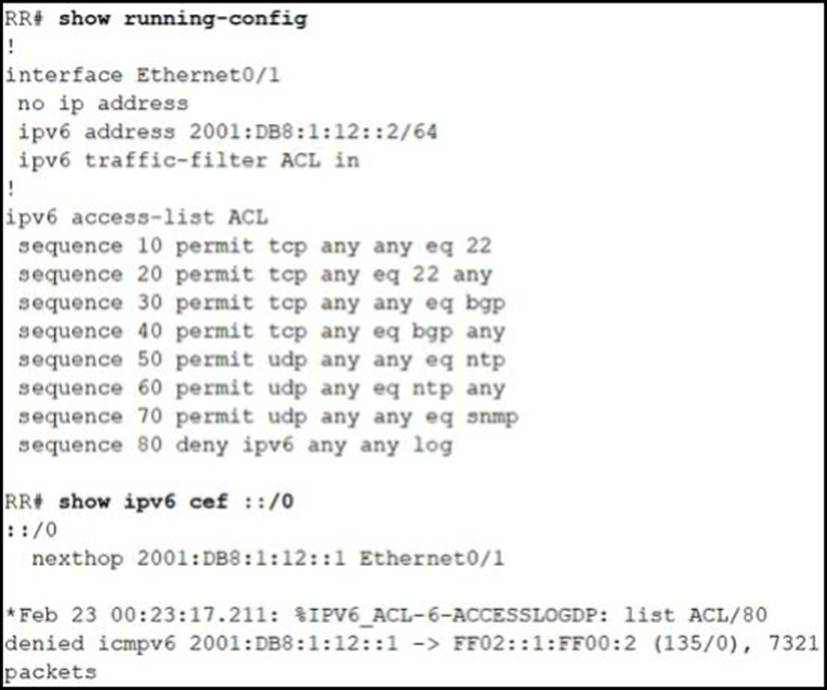 - C . Permit ICMPv6 neighbor discovery traffic in the ACL.
