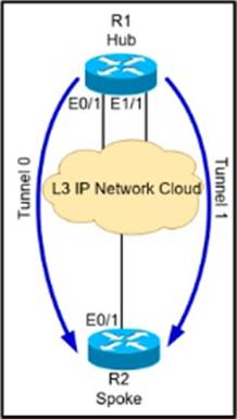 - A . Split horizon prevents the routes from being advertised between spoke routers it should be disabled with the command no ip split-horizon eigrp 10 on the tunnel interface of R1