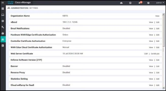 - E . Install the certificate received from the CA server manually on the vManage