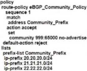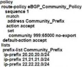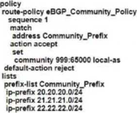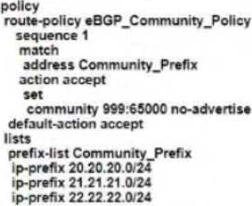 The engineering must assign tags to 3 Of its 74 server networks as soon as they are advertised to peers These server network must not be advertised AS which configuration fulfil the requirement?