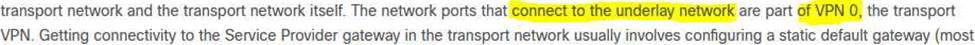 Which VPN connects the transport-side WAN Edge interface to the underlay/WAN network?